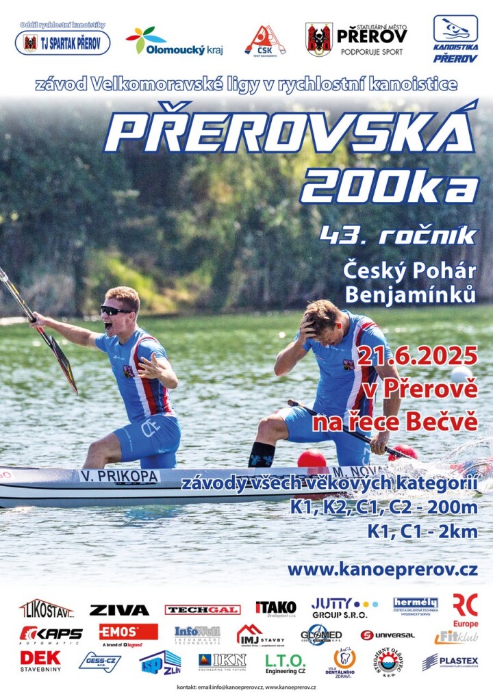 Dne 21. 6. 2025 se uskutečnil již 43. ročník závodu Přerovská 200, který opět potvrdil svou dlouholetou tradici a pevné místo v kalendáři rychlostní kanoistiky. Závod přilákal řadu mladých závodníků i jejich trenérů a nabídl skvělou sportovní atmosféru i hodnotné výkony.